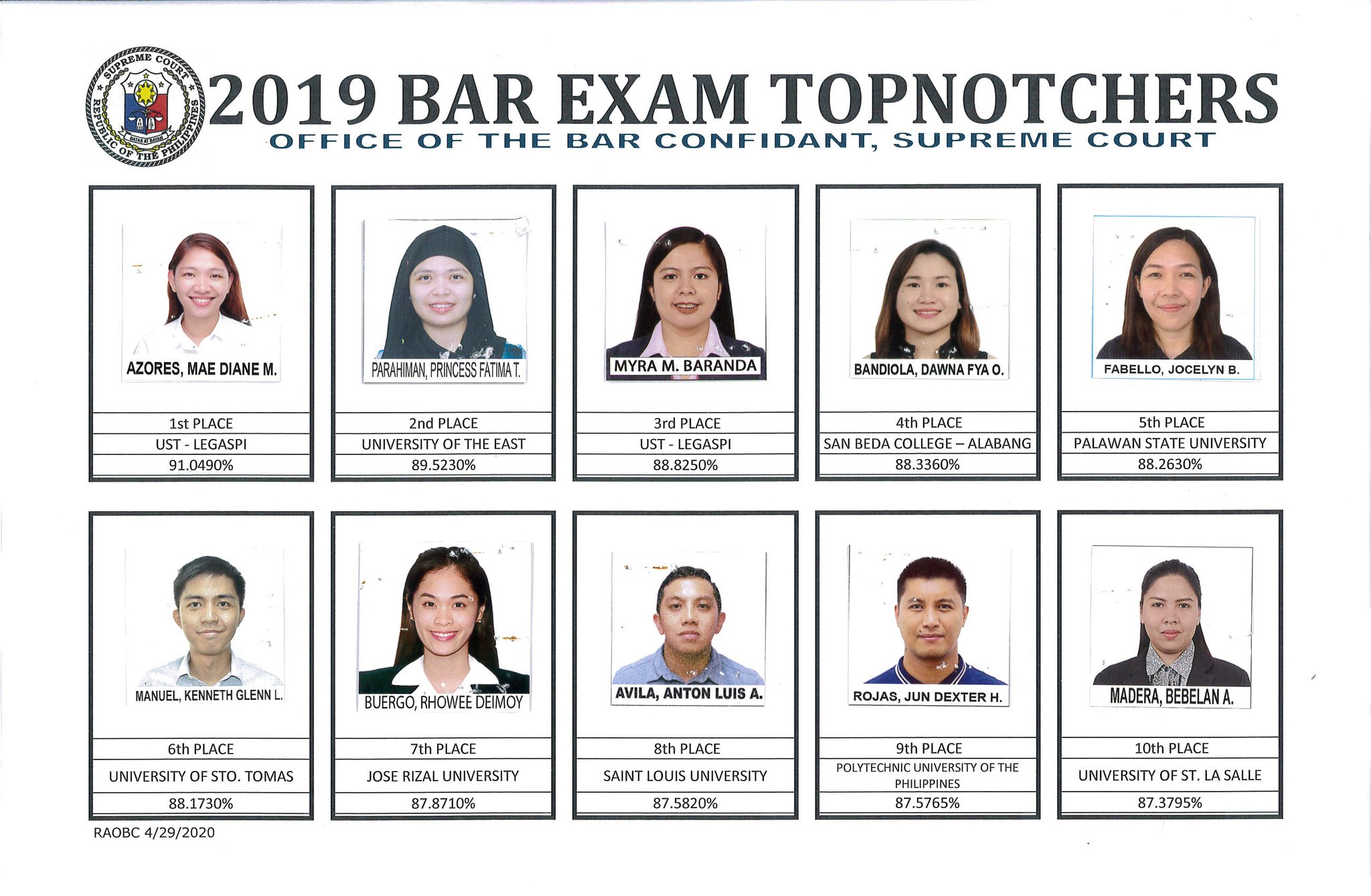 Philippine Supreme Court Public Information Office On Twitter The Bar2019 Bernabar2019 Topnotchers