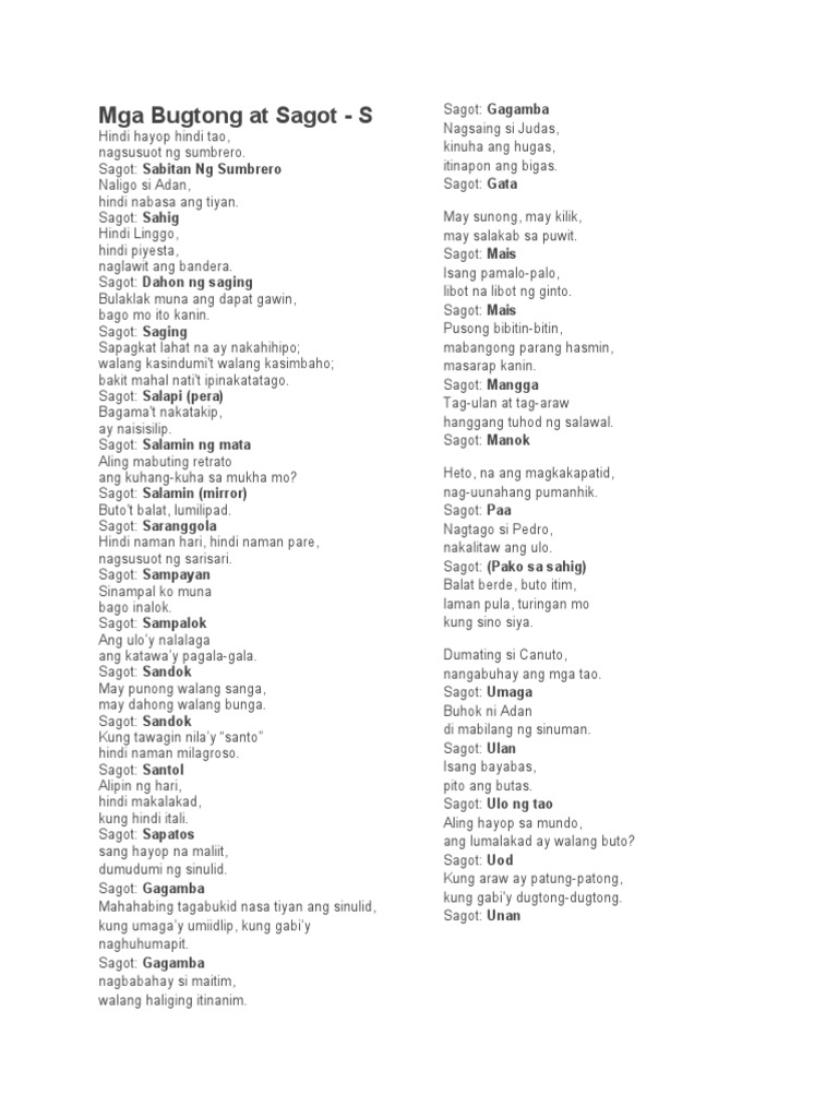Mga Bugtong At Sagot Biggest Collection 220 Bugtong Filipino 30783